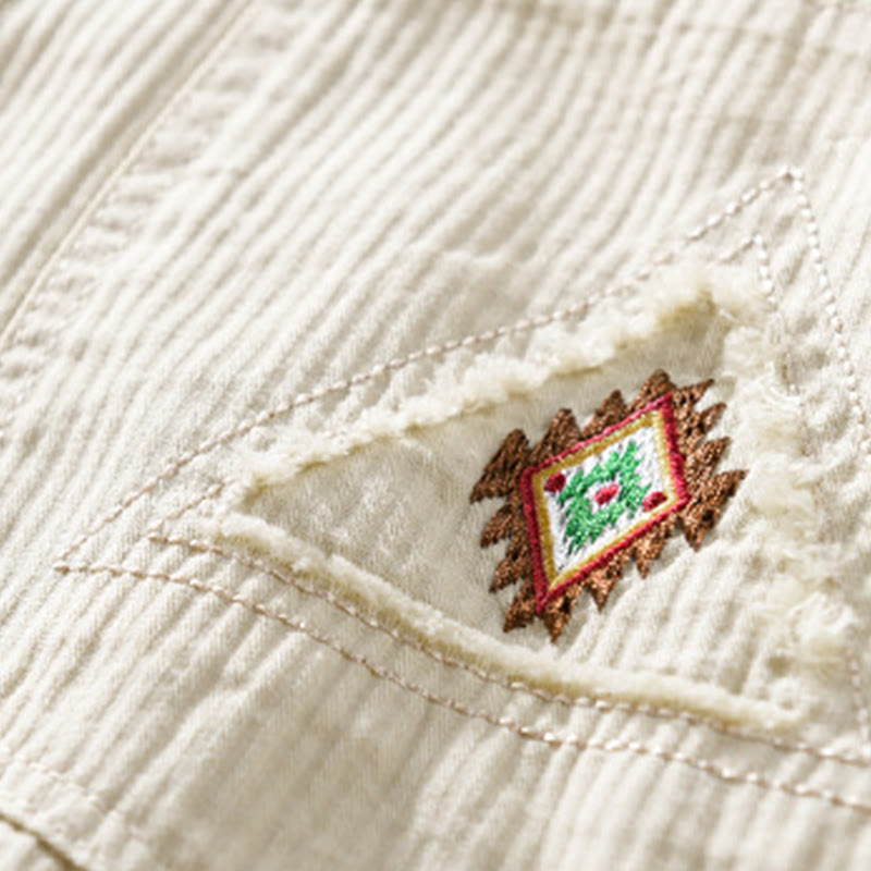 Buddha Stones Fall Triangle Rhombus Decorative Pocket Buttons Down Stand Collar Long Sleeve Men's Cotton Shirt