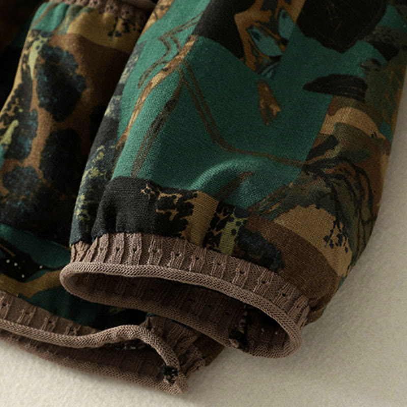 Buddha Stones Fall Geometric Patchwork V-Neck Women's Long Sleeve T-shirt With Pockets - image 15