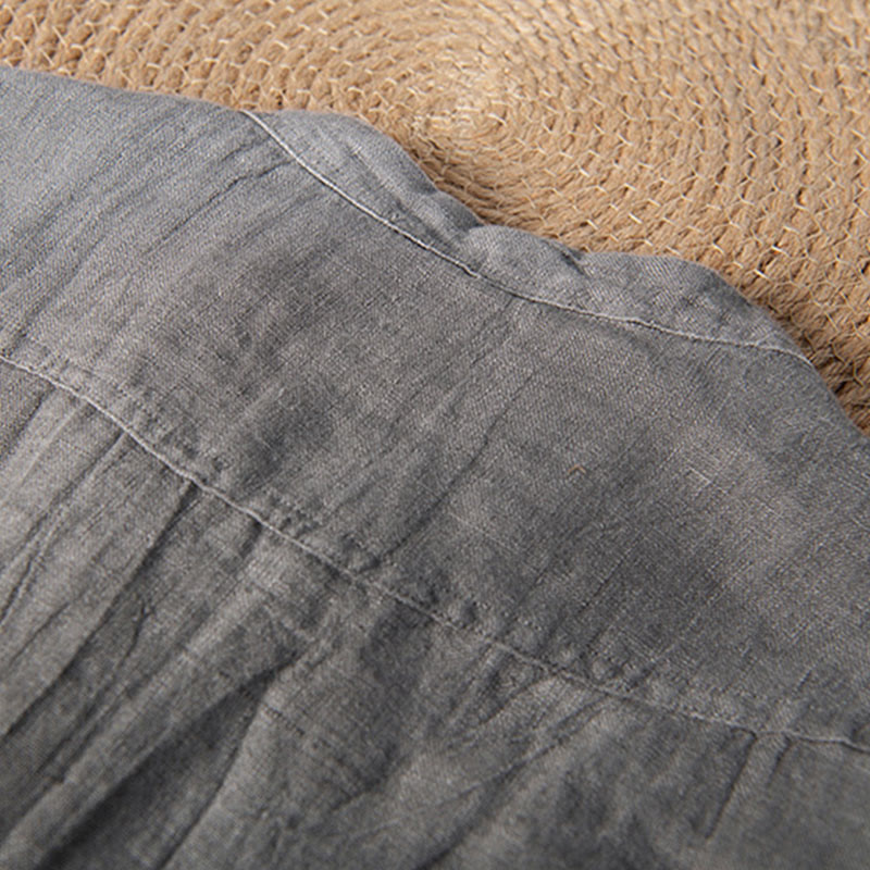 Buddha Stones Solid Color Short Sleeve Half Button Shirt Cotton Linen Men Clothing - Short Sleeve - Gray - US/UK/AU50,EU60 (5XL) - image 0