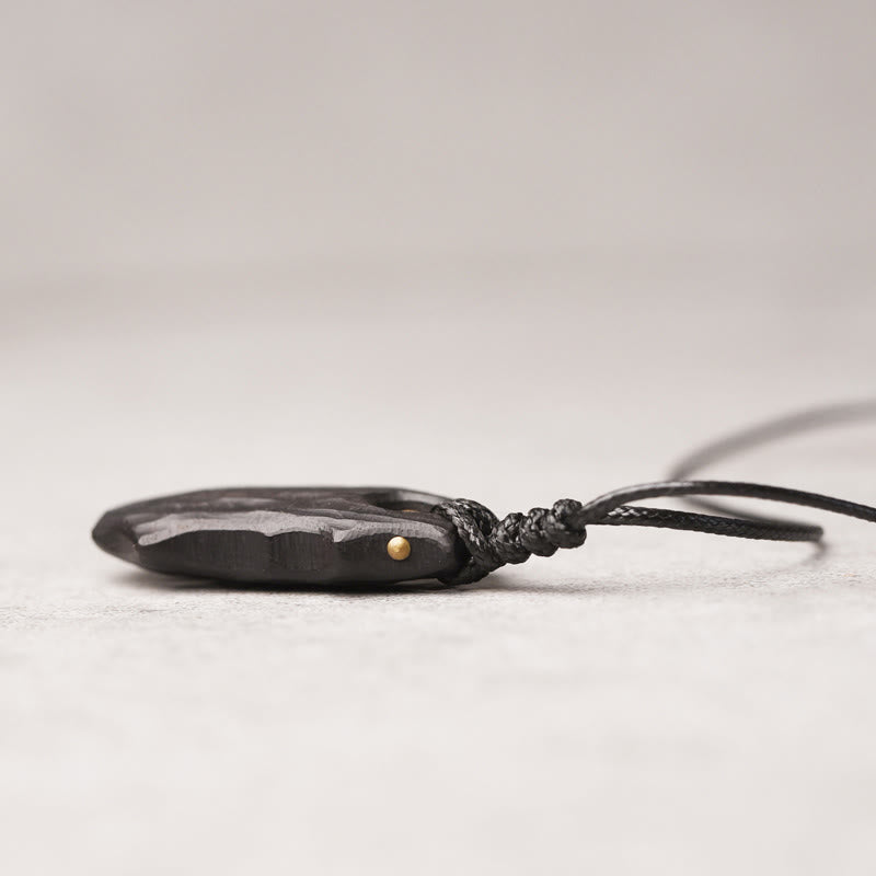 Buddha Stones Ebony Wood Irregular Shape Copper Bead Peace Calm Necklace Pendant