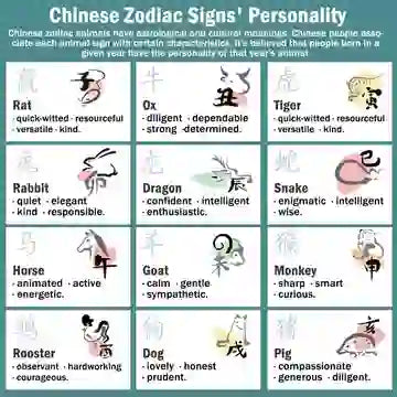 Chinese zodiac animals have astrological and cultural meanings. Chinese people associate each animal sign with certain characteristics. It's believed that people born in a given year have the personality of that year's animal.