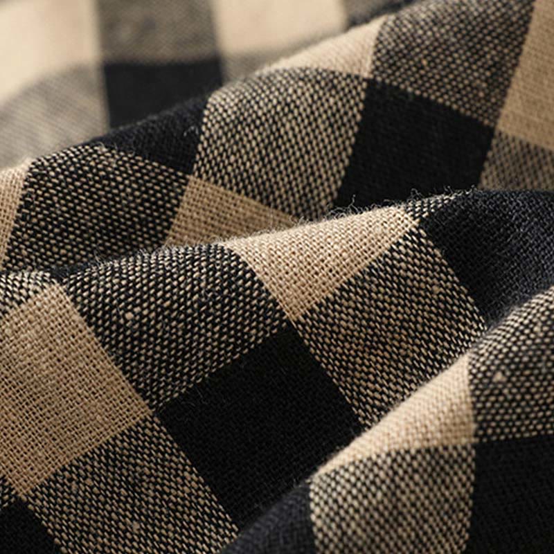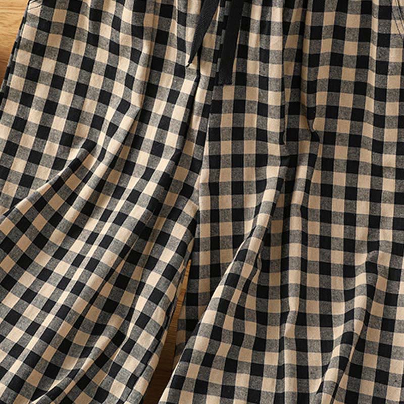 Buddha Stones Casual Cotton Stitching Grid Women's 7-8 Length Wide Leg Pants With Pockets