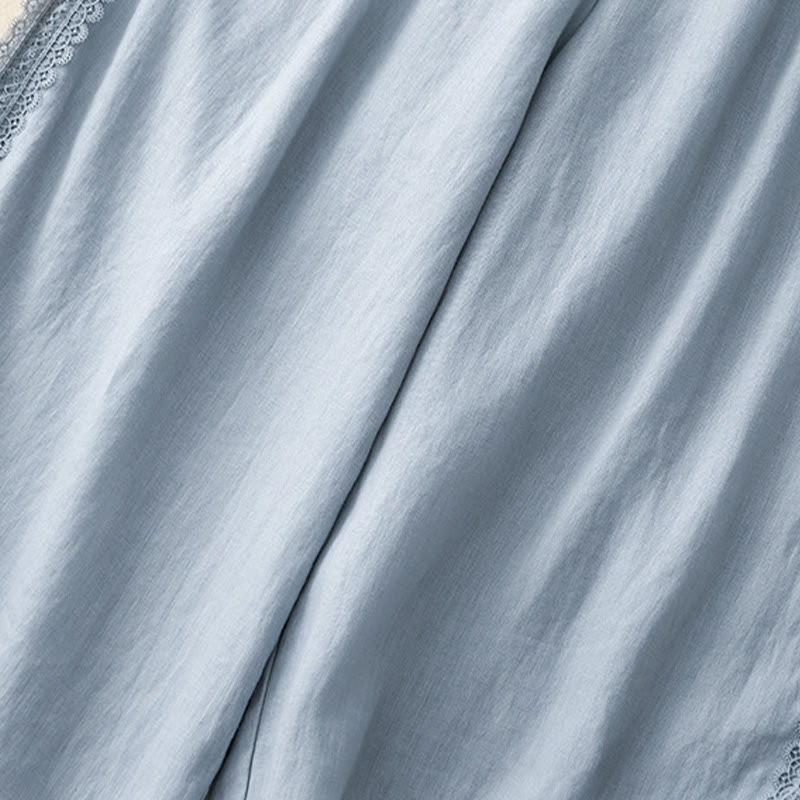 Buddha Stones Plain Color Lace Stitching Cotton Linen Women's Wide Leg Pants With Pockets - LightSkyBlue - US8-10,UK/AU12-14,EU40-42 (2XL) - image 0