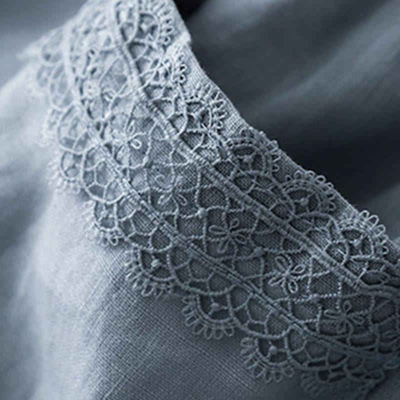 Buddha Stones Plain Color Lace Stitching Cotton Linen Women's Wide Leg Pants With Pockets - image 14