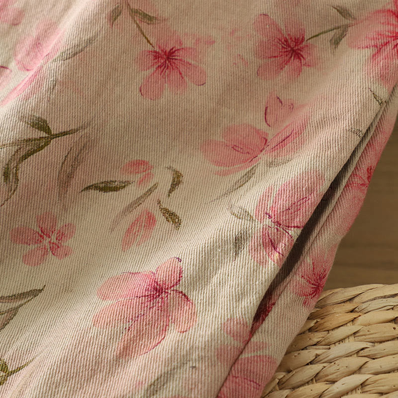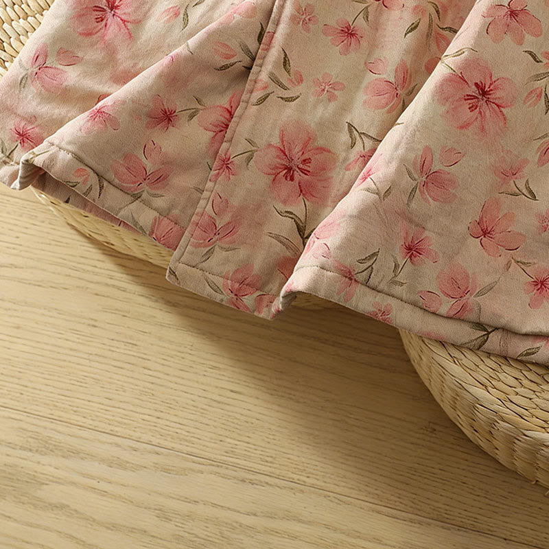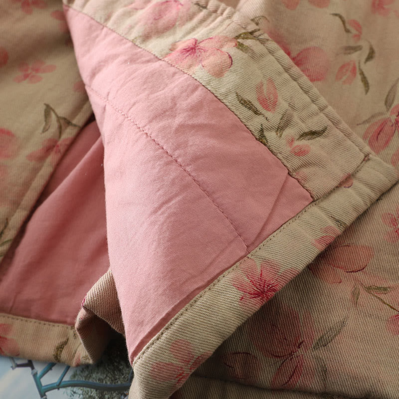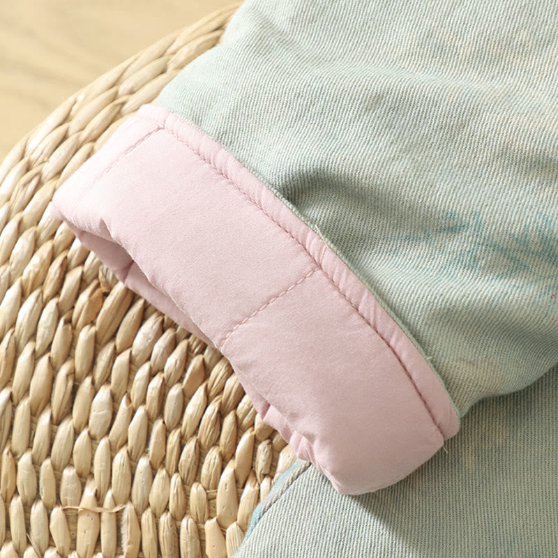 Buddha Stones Frog-button Flower Pattern Crew Neck Thickened Long Sleeve Women's Coat