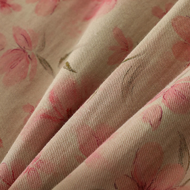 Buddha Stones Frog-button Flower Pattern Crew Neck Thickened Long Sleeve Women's Coat  - Pink - US14,UK/AU18,EU46 (2XL) - image 0