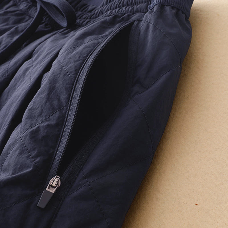 Buddha Stones Winter Lines Elastic Waist Drawstring Cotton Thermal Women's Pants With Zipper Pockets