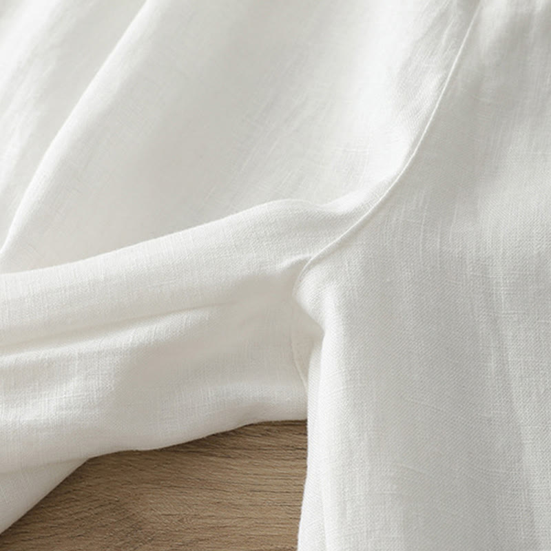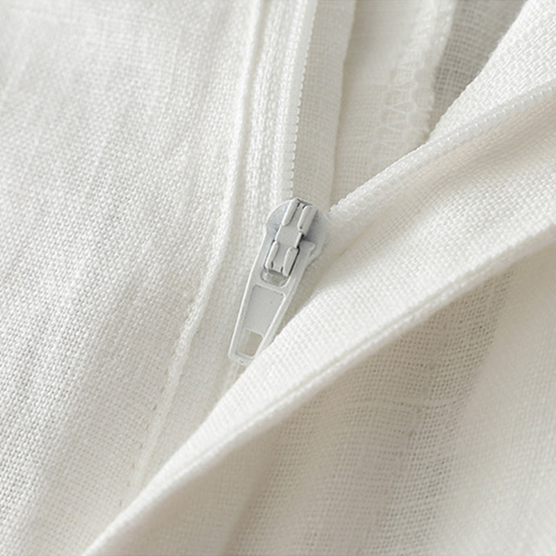 Buddha Stones Women's Fall Commute Solid Color Zipper Design Cotton Wide Leg Pants With Pockets - White - US12,UK/AU16,EU44 (2XL) - image 5