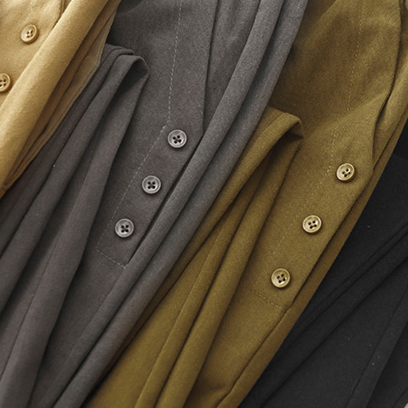 Buddha Stones Casual Snap Buttons Women's Cotton Polyester Pants With Pockets