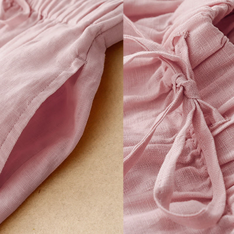 Buddha Stones Summer Elastic Waist Women's Capri Cropped Wide Leg Pants With Pockets - LightPink - US14,UK/AU18,EU46 (3XL) - image 6