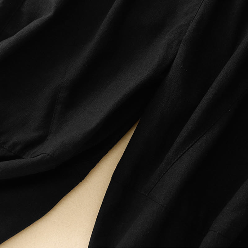 Buddha Stones Commute Casual Pure Color Women's Wide Leg Cotton Cropped Pants With Pockets - Black - US8-10,UK/AU12-14,EU40-42 (2XL) - image 6