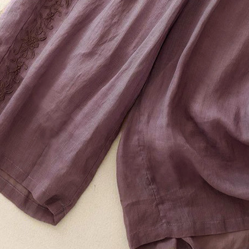 Buddha Stones Side Embroidery Design Women's 7-8 Length Wide Leg Pants With Pockets - MediumOrchid - US12,UK/AU16,EU44 (3XL) - image 0