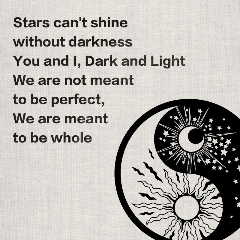 YinYang, the two complementary forces that make up all aspects and phenomena of life. Yin is a symbol of earth, femaleness, darkness, passivity, and absorption. Yang is conceived of as heaven, maleness, light, activity, and penetration. In harmony, the two are depicted as the light and dark halves of a circle. Yin and yang are still important today in traditional Chinese medicine and Feng Shui. It is believed that to be healthy, one needs to balance the yin and yang forces within one's own body.