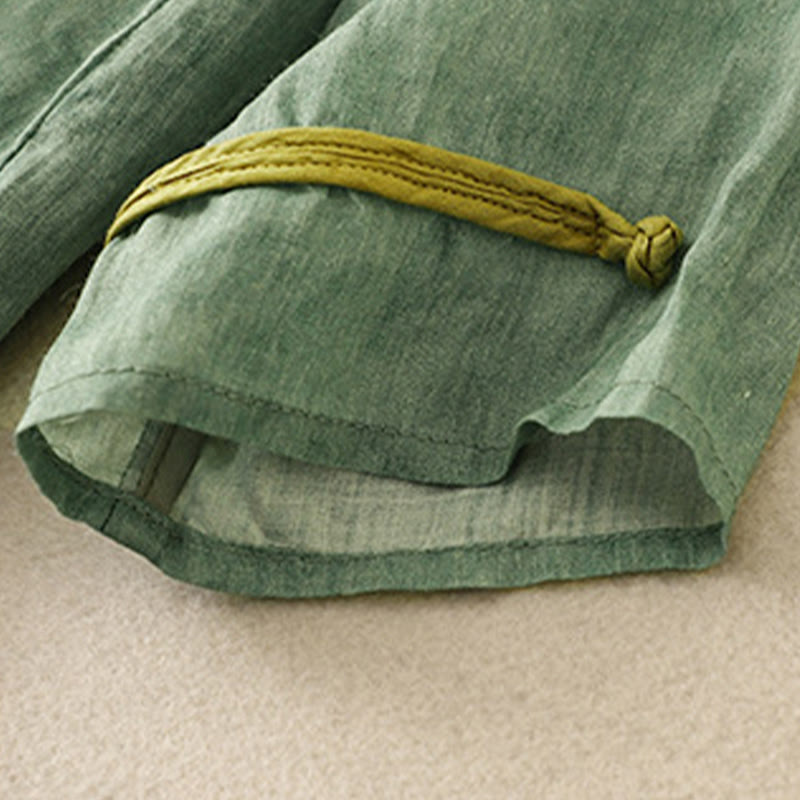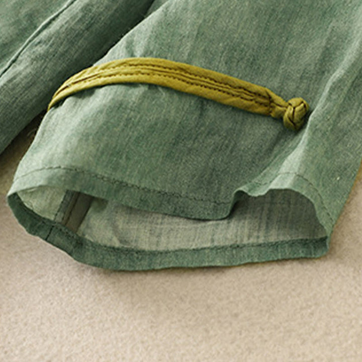 Buddha Stones Summer Casual Embroidered Stand Collar Design Three Quarter Sleeve Acrylic Midi Dress - MediumSeaGreen - US8-10,UK/AU12-14,EU40-42 (2XL) - image 0