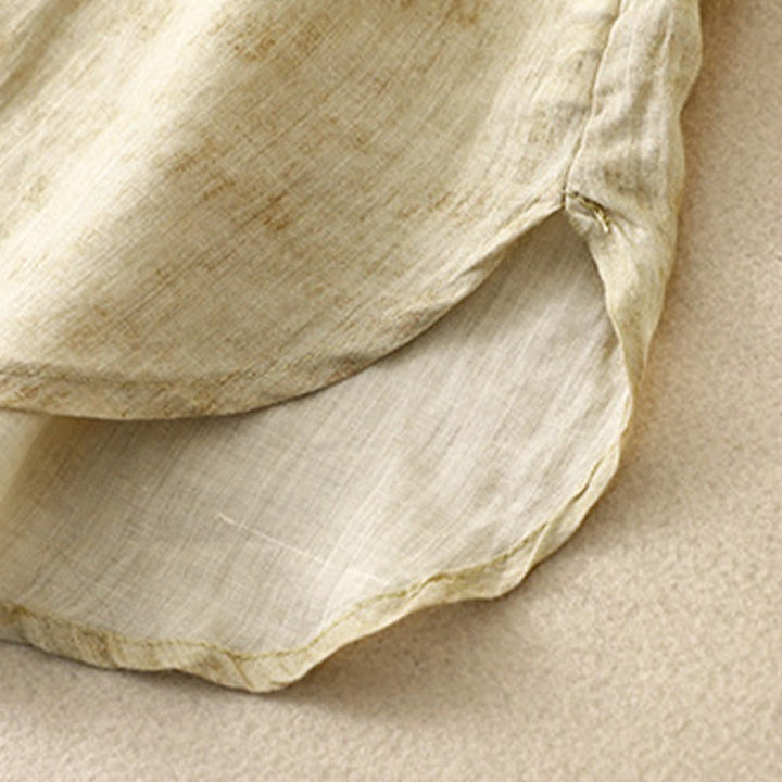 Buddha Stones Summer Casual Embroidered Stand Collar Design Three Quarter Sleeve Acrylic Midi Dress - LemonChiffon - US8-10,UK/AU12-14,EU40-42 (2XL) - image 7