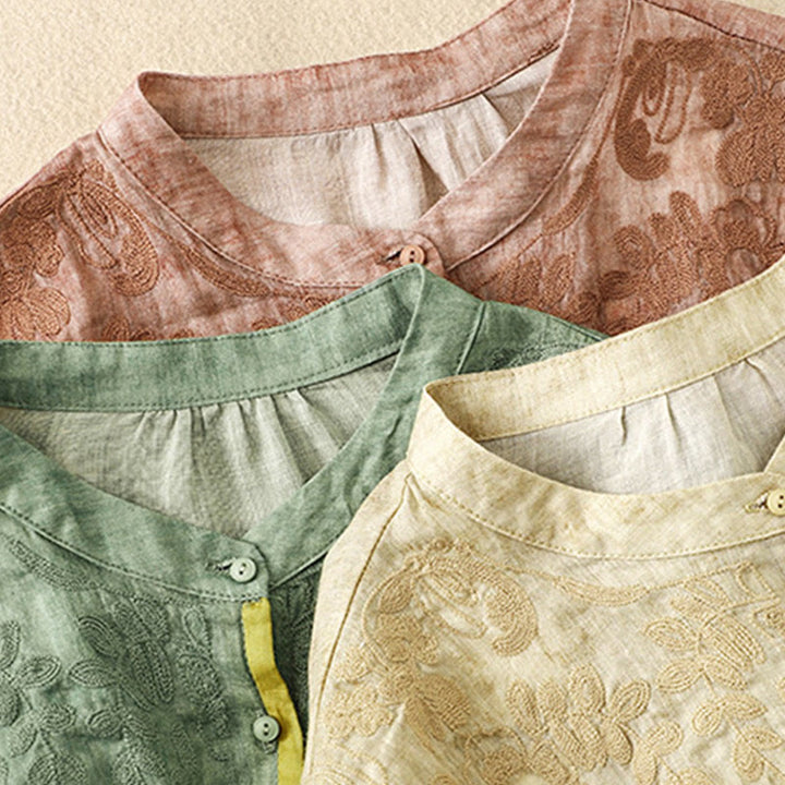 Buddha Stones Summer Casual Embroidered Stand Collar Design Three Quarter Sleeve Acrylic Midi Dress - image 24